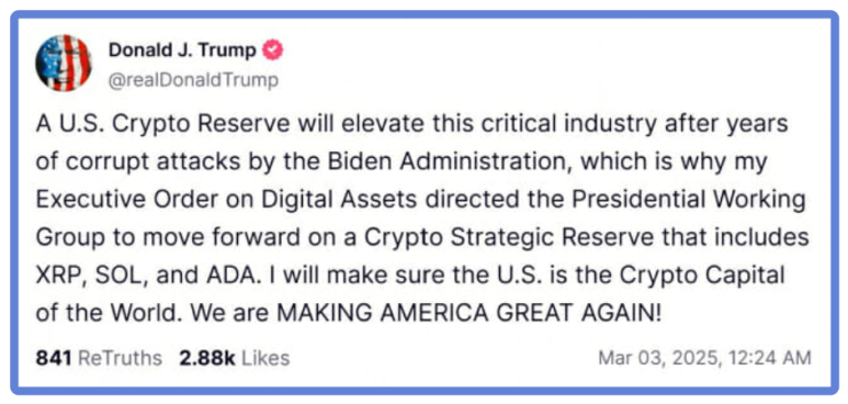 트럼프의 공식 발표는 전략적 자산 매입과는 상관없이